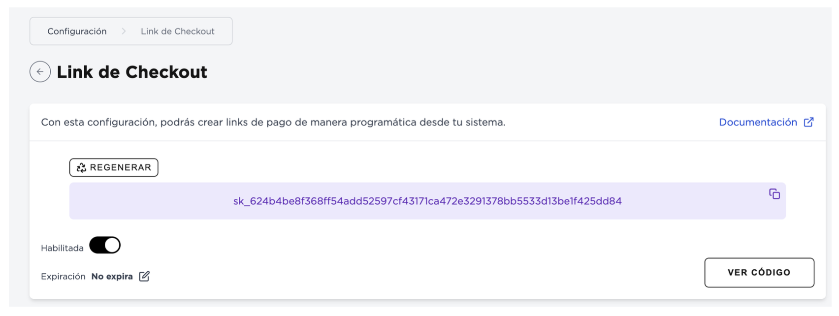 - Link de Checkout: Llave generada en la sección Configuración→Link de Checkout, del portal proporcionado por el equipo de N1co.