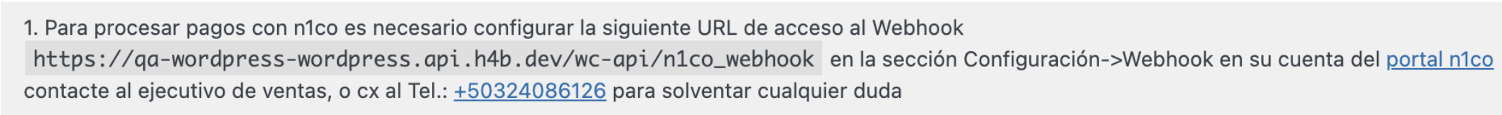 ¡Gracias por elegir la Pasarela de Pago n1co para tu tienda WooCommerce! Estamos aquí para ayudarte, si necesitas soporte adicional https://wa.me/50324086126