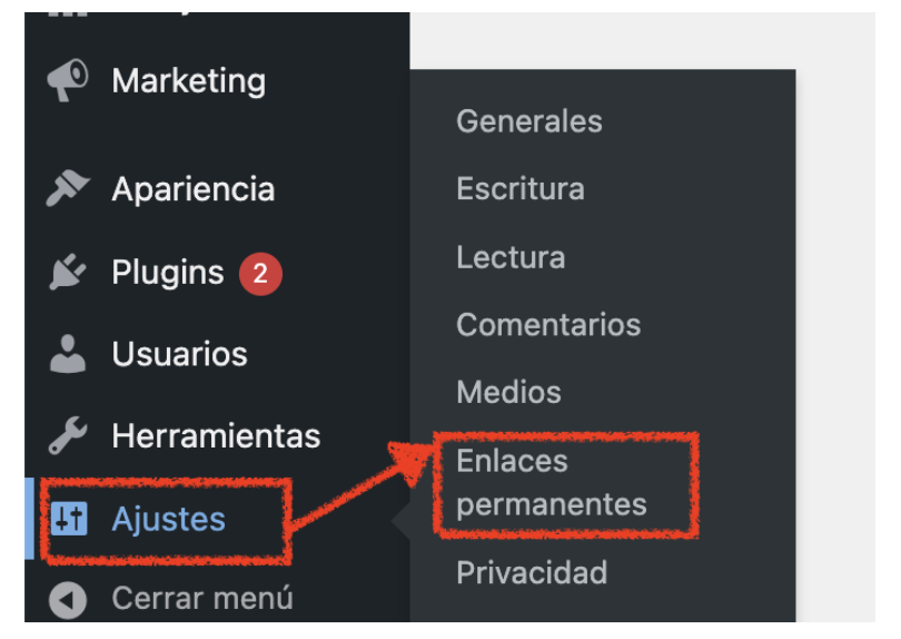 - Para el correcto funcionamiento del webhook es necesario configurar Ajustes->Enlaces Permanente como “Nombre de la entradaˮ