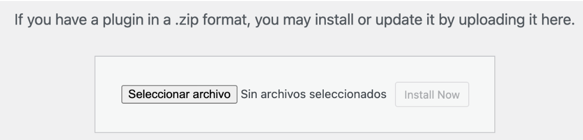 - Haz clic en el botón "Subir plugin" y selecciona el archivo ZIP descargado.