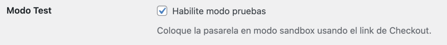 ⚠Importante: Para realizar pruebas en ambiente sandbox sin afectar tu tienda en producción debes marcar el checkbox que se encuentra en la opción“Modo Testˮ.