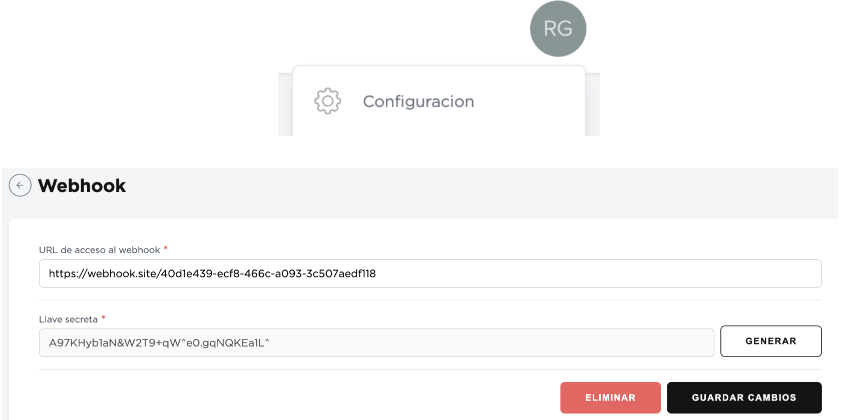 - Token: Llave secreta generada en la sección Configuracion→Webhook, del portal proporcionado por el equipo de N1co.