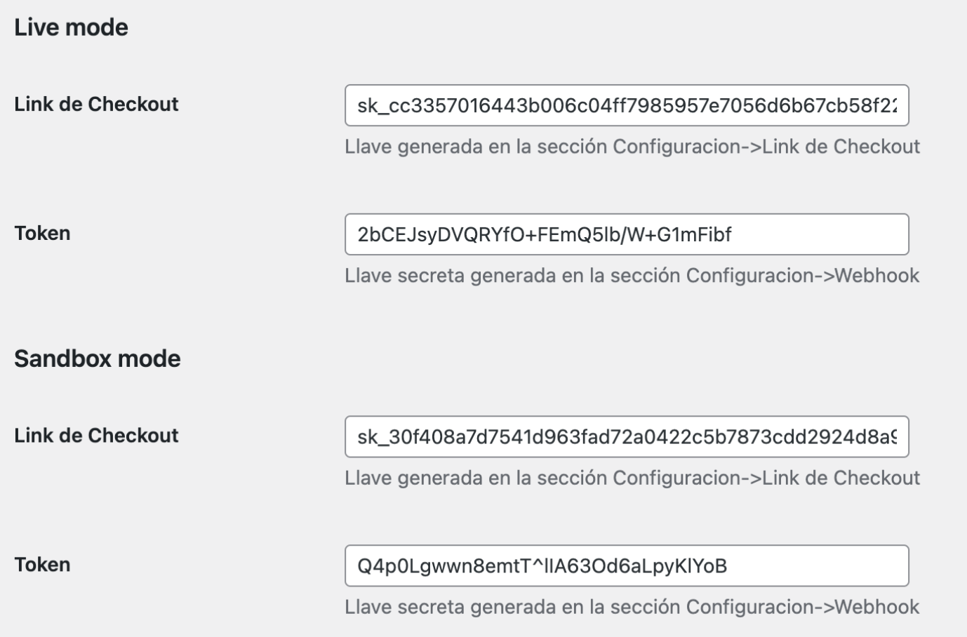 ⚠Importante: En la configuración existen dos secciones “Live modeˮ y “Sandbox modeˮ,